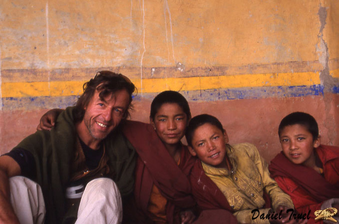 En compagnie de moinillons au monastère de Karsha (Zanskar, Ladakh, Cachemire, nord de l'Inde). L'ambiance d'une cérémonie étonne en général ceux qui y participent pour la première fois. Entre les facéties des plus jeunes et l'assoupissement des ainés, nos regards ne manquent pas d'être amusés. La fascination qu'excerce le boudhisme sur nous depuis notre monde se trouve franchement ébranlée au contact du terrain. Il y a toujours un décalage entre ce qu'on imagine à propos d'une civilisation et le vécu en prise direct avec ces ôdeurs, ces yeux qui vous scrutent et cette atmosphère dans laquelle on se retrouve plongé. C'est là que commence le voyage, la découverte.