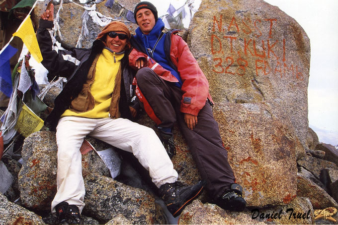 Avec mon fils Samy au col le plus haut du monde accessible par la route à 5610 mètres d'altitude. J'espère que Tiphaine, la petite soeur, viendra un jour visiter le Ladakh , un des plus beaux pays du monde. Ici le col du Kardung La au Cachemire indien.